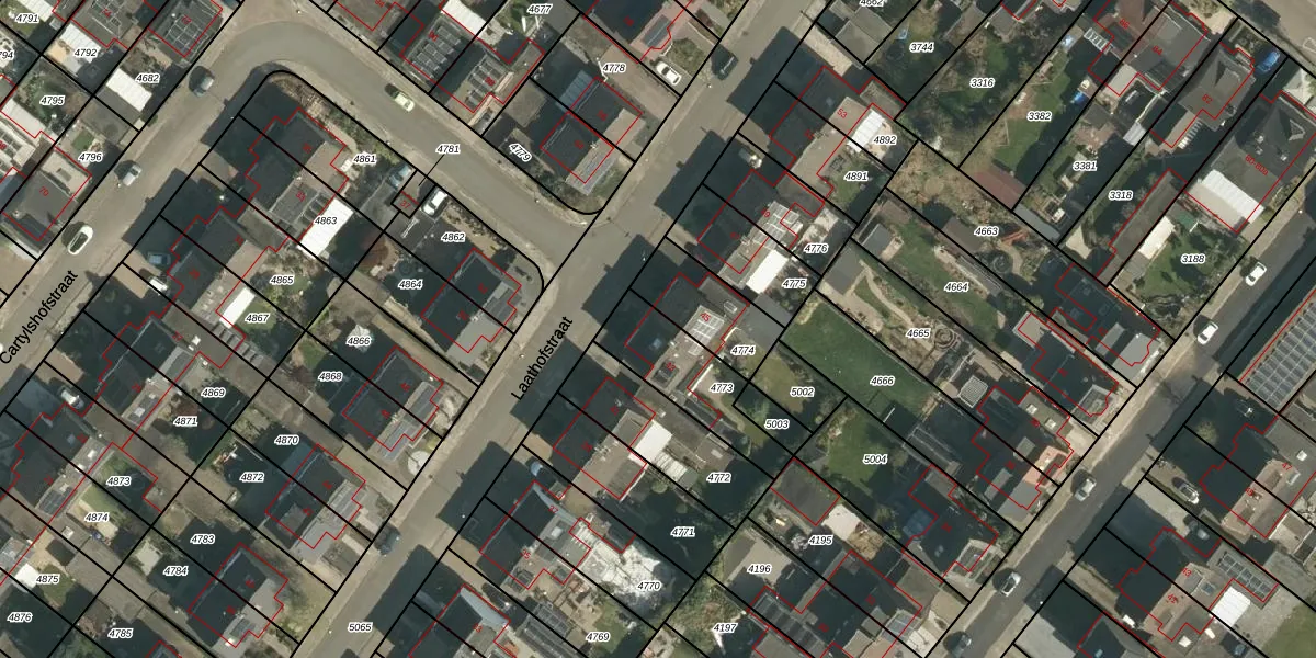Laathofstraat 43 is gelegen op kadastraal perceel BEE02A4773. Deze kadastrale aanduiding is uniek en wordt gebruikt door het Kadaster om eigendomsrechten en andere zakelijke rechten vast te leggen. Het perceel maakt onderdeel uit van de kadastrale gemeente Beek.