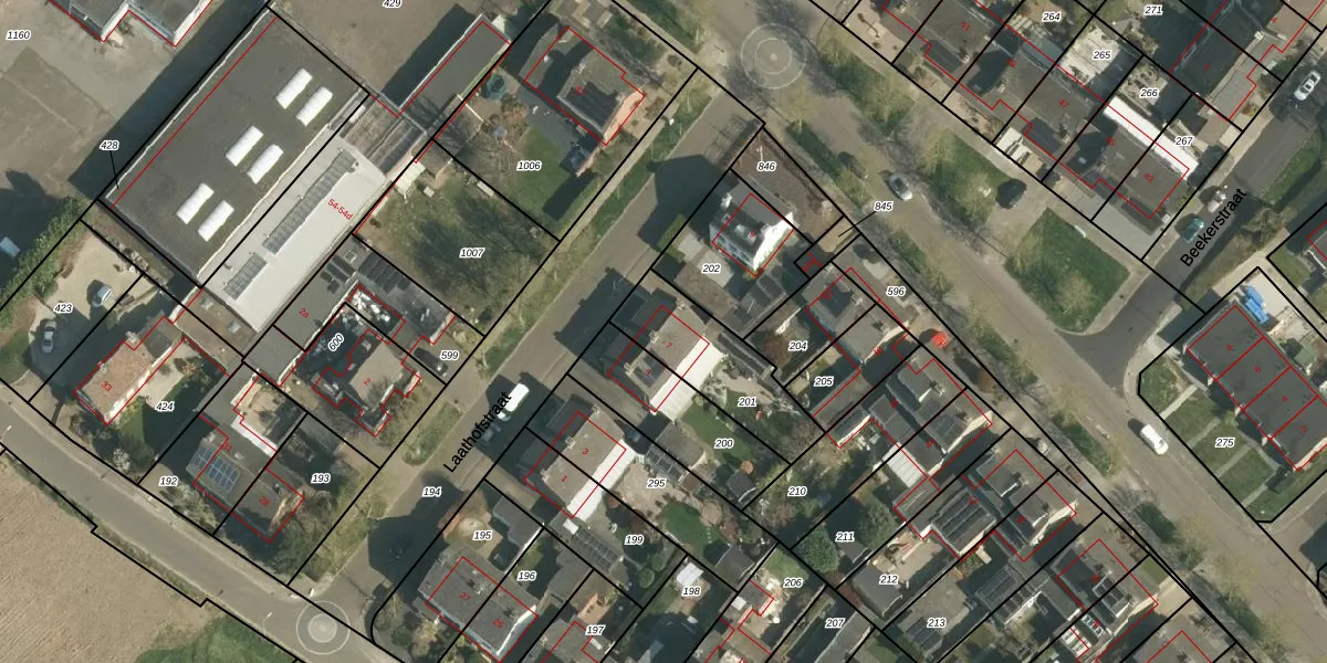 Laathofstraat 7 is gelegen op kadastraal perceel BEE02I201. Deze kadastrale aanduiding is uniek en wordt gebruikt door het Kadaster om eigendomsrechten en andere zakelijke rechten vast te leggen. Het perceel maakt onderdeel uit van de kadastrale gemeente Beek.