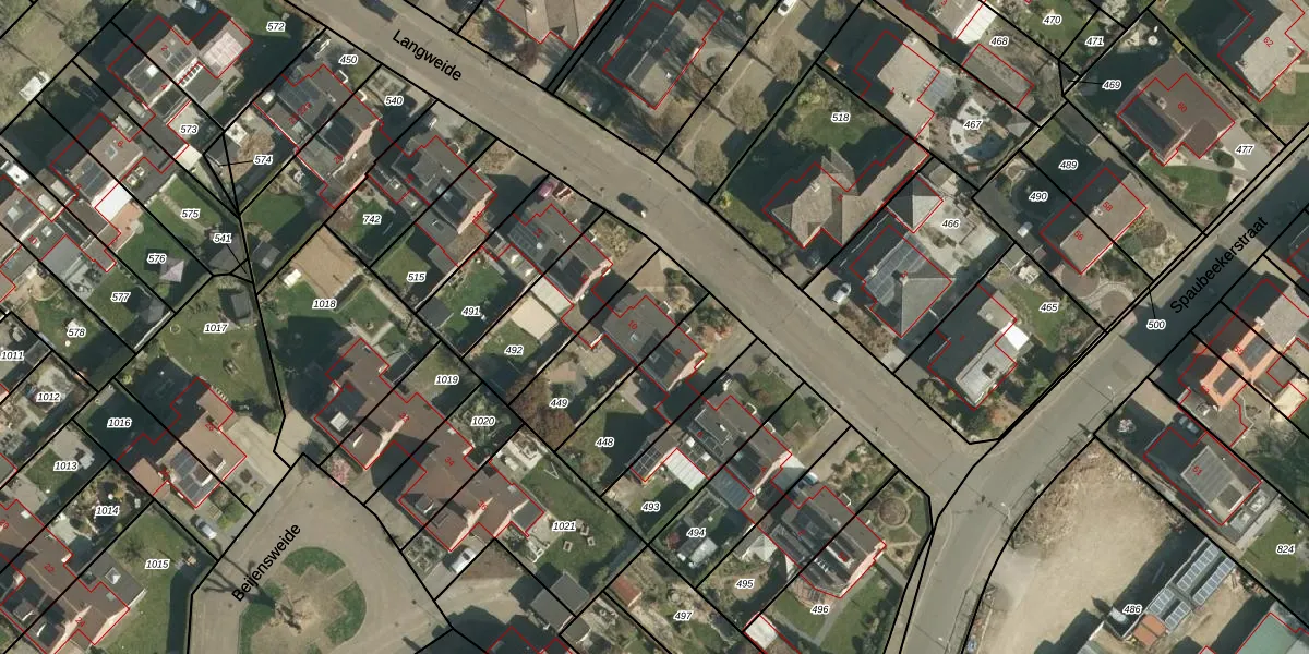 Langweide 10 is gelegen op kadastraal perceel BEE02I449. Deze kadastrale aanduiding is uniek en wordt gebruikt door het Kadaster om eigendomsrechten en andere zakelijke rechten vast te leggen. Het perceel maakt onderdeel uit van de kadastrale gemeente Beek.