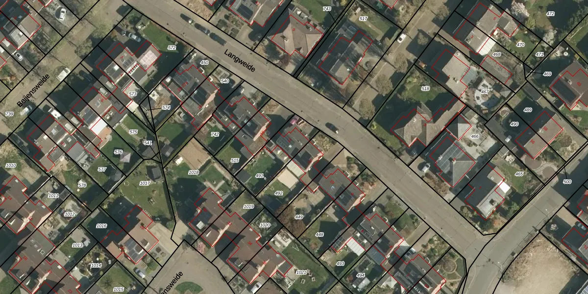 Langweide 14 is gelegen op kadastraal perceel BEE02I491. Deze kadastrale aanduiding is uniek en wordt gebruikt door het Kadaster om eigendomsrechten en andere zakelijke rechten vast te leggen. Het perceel maakt onderdeel uit van de kadastrale gemeente Beek.