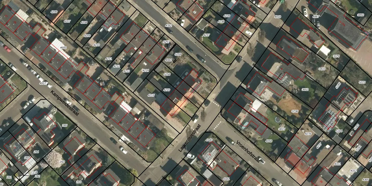 Het perceel waarop Laurentiusstraat 16 staat heeft een oppervlakte van 192 m². Dit is een middelgroot perceel. De perceeloppervlakte wordt geregistreerd door het Kadaster. Gedetailleerde informatie over de maten van dit perceel kunt u vinden in het rapport Kadastrale kaart met maatvoering van Laurentiusstraat 16.