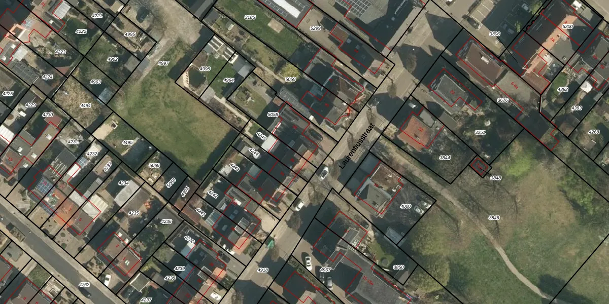 Laurentiusstraat 38 is gelegen op kadastraal perceel BEE02A5058. Deze kadastrale aanduiding is uniek en wordt gebruikt door het Kadaster om eigendomsrechten en andere zakelijke rechten vast te leggen. Het perceel maakt onderdeel uit van de kadastrale gemeente Beek.