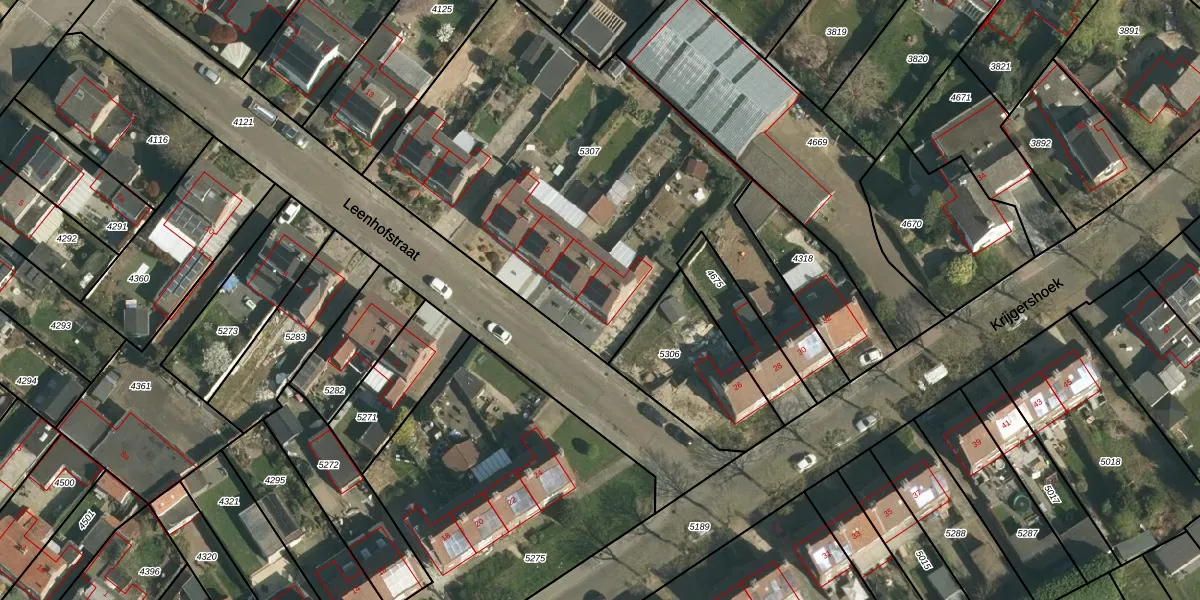 Leenhofstraat 1 is gelegen op kadastraal perceel BEE02A5307. Deze kadastrale aanduiding is uniek en wordt gebruikt door het Kadaster om eigendomsrechten en andere zakelijke rechten vast te leggen. Het perceel maakt onderdeel uit van de kadastrale gemeente Beek.