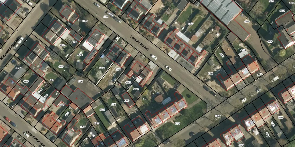 Het perceel waarop Leenhofstraat 2 staat heeft een oppervlakte van 270 m². Dit is een middelgroot perceel. De perceeloppervlakte wordt geregistreerd door het Kadaster. Gedetailleerde informatie over de maten van dit perceel kunt u vinden in het rapport Kadastrale kaart met maatvoering van Leenhofstraat 2.