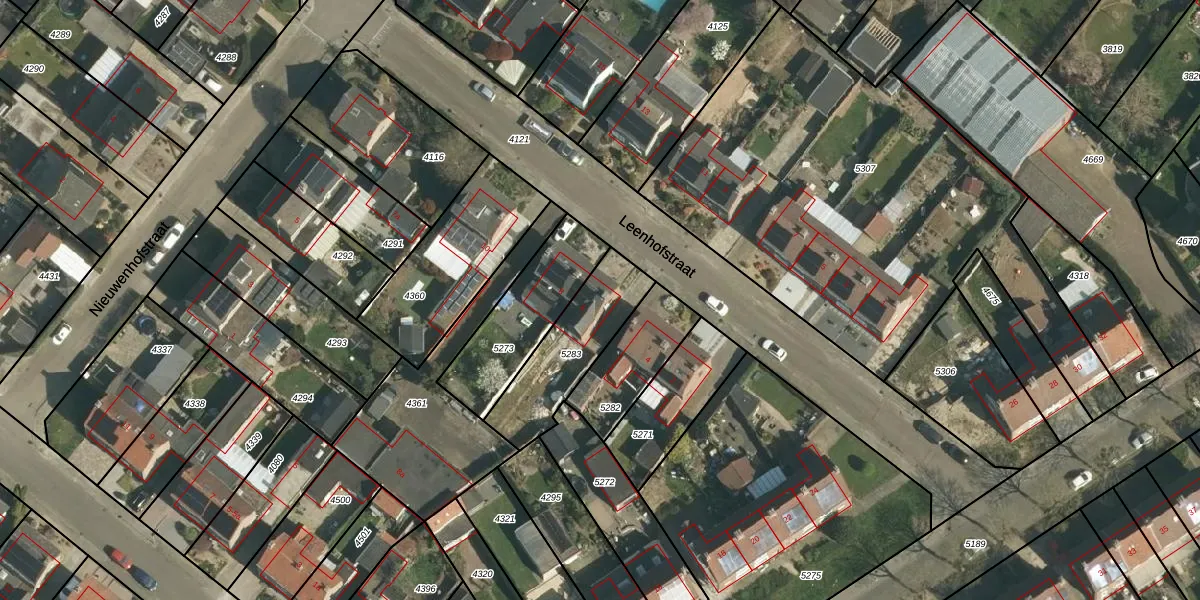 Het perceel waarop Leenhofstraat 6 staat heeft een oppervlakte van 333 m². Dit is een groot perceel. De perceeloppervlakte wordt geregistreerd door het Kadaster. Gedetailleerde informatie over de maten van dit perceel kunt u vinden in het rapport Kadastrale kaart met maatvoering van Leenhofstraat 6.