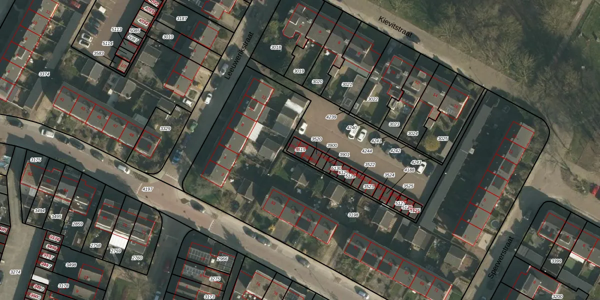 Het perceel waarop Leeuwerikstraat 12-G02 staat heeft een oppervlakte van 42 m². Dit is een klein perceel. De perceeloppervlakte wordt geregistreerd door het Kadaster. Gedetailleerde informatie over de maten van dit perceel kunt u vinden in het rapport Kadastrale kaart met maatvoering van Leeuwerikstraat 12-G02.