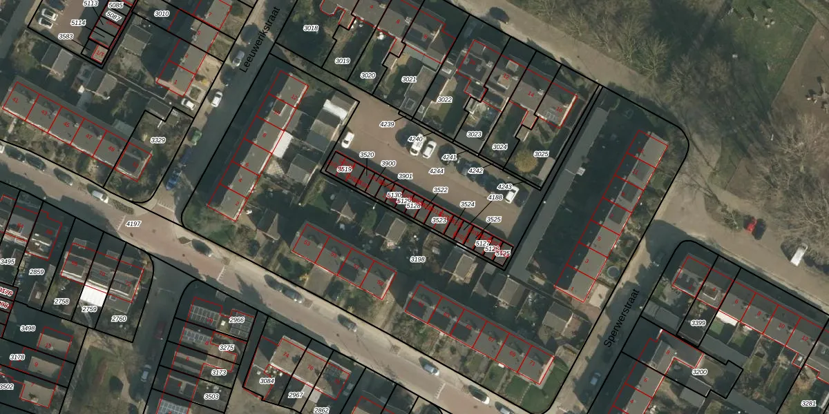 Het perceel waarop Leeuwerikstraat 12-G09 staat heeft een oppervlakte van 14 m². Dit is een klein perceel. De perceeloppervlakte wordt geregistreerd door het Kadaster. Gedetailleerde informatie over de maten van dit perceel kunt u vinden in het rapport Kadastrale kaart met maatvoering van Leeuwerikstraat 12-G09.