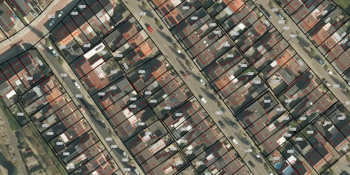 Luciastraat 55 is gelegen op kadastraal perceel BEE02B6182. Deze kadastrale aanduiding is uniek en wordt gebruikt door het Kadaster om eigendomsrechten en andere zakelijke rechten vast te leggen. Het perceel maakt onderdeel uit van de kadastrale gemeente Beek.