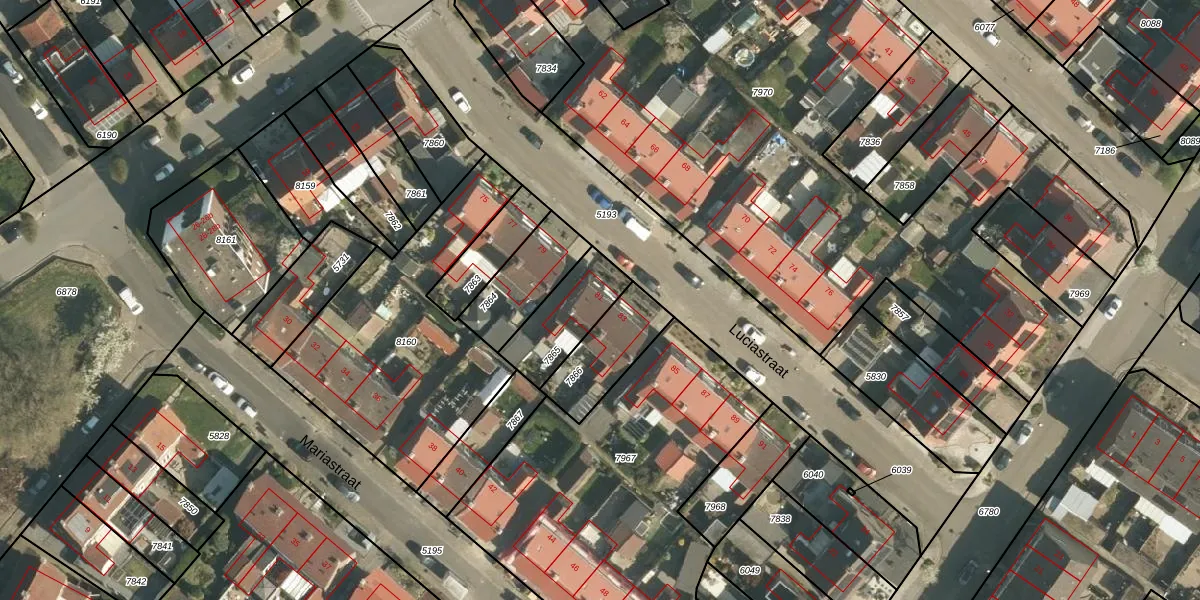Het perceel waarop Luciastraat 81 staat heeft een oppervlakte van 216 m². Dit is een middelgroot perceel. De perceeloppervlakte wordt geregistreerd door het Kadaster. Gedetailleerde informatie over de maten van dit perceel kunt u vinden in het rapport Kadastrale kaart met maatvoering van Luciastraat 81.