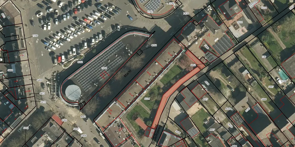 Het perceel waarop Markt 50 staat heeft een oppervlakte van 2710 m². Dit is een zeer groot perceel. De perceeloppervlakte wordt geregistreerd door het Kadaster. Gedetailleerde informatie over de maten van dit perceel kunt u vinden in het rapport Kadastrale kaart met maatvoering van Markt 50.