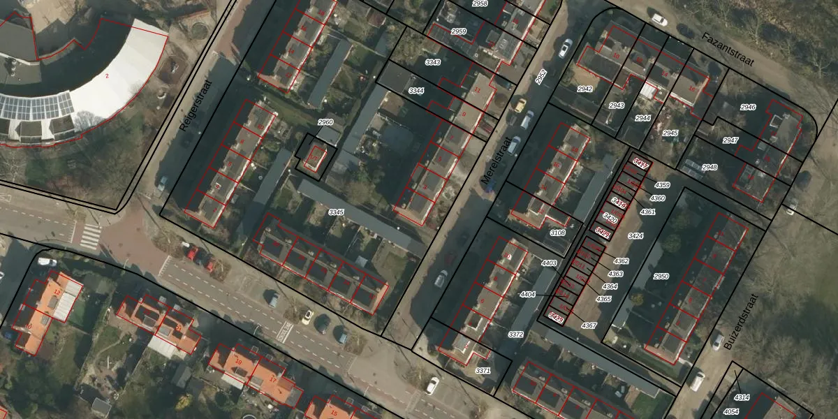 Het perceel waarop Merelstraat 1 staat heeft een oppervlakte van 3546 m². Dit is een zeer groot perceel. De perceeloppervlakte wordt geregistreerd door het Kadaster. Gedetailleerde informatie over de maten van dit perceel kunt u vinden in het rapport Kadastrale kaart met maatvoering van Merelstraat 1.
