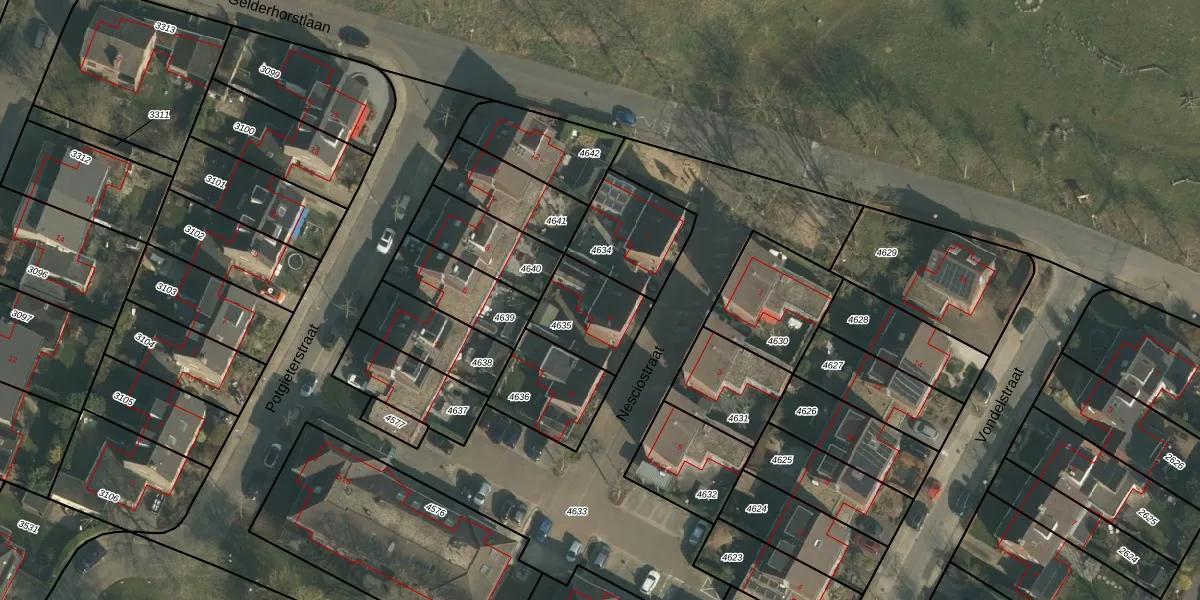 Gebruik de zoekbalk of klik op een perceel voor informatie over de adressen binnen dit perceel.