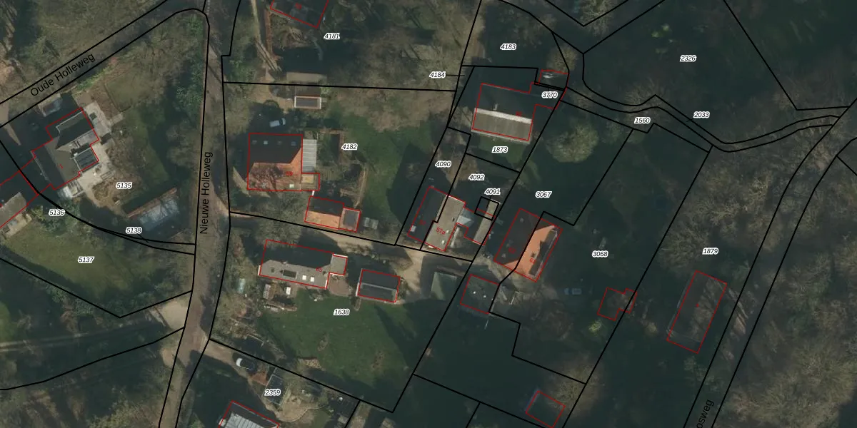 Gebruik de zoekbalk of klik op een perceel voor informatie over de adressen binnen dit perceel.