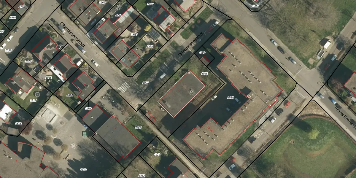 Het perceel waarop Olterdissenstraat 1 staat heeft een oppervlakte van 1043 m². Dit is een zeer groot perceel. De perceeloppervlakte wordt geregistreerd door het Kadaster. Gedetailleerde informatie over de maten van dit perceel kunt u vinden in het rapport Kadastrale kaart met maatvoering van Olterdissenstraat 1.