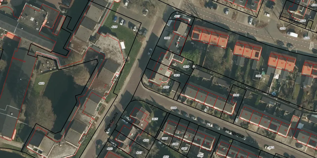 Gebruik de zoekbalk of klik op een perceel voor informatie over de adressen binnen dit perceel.