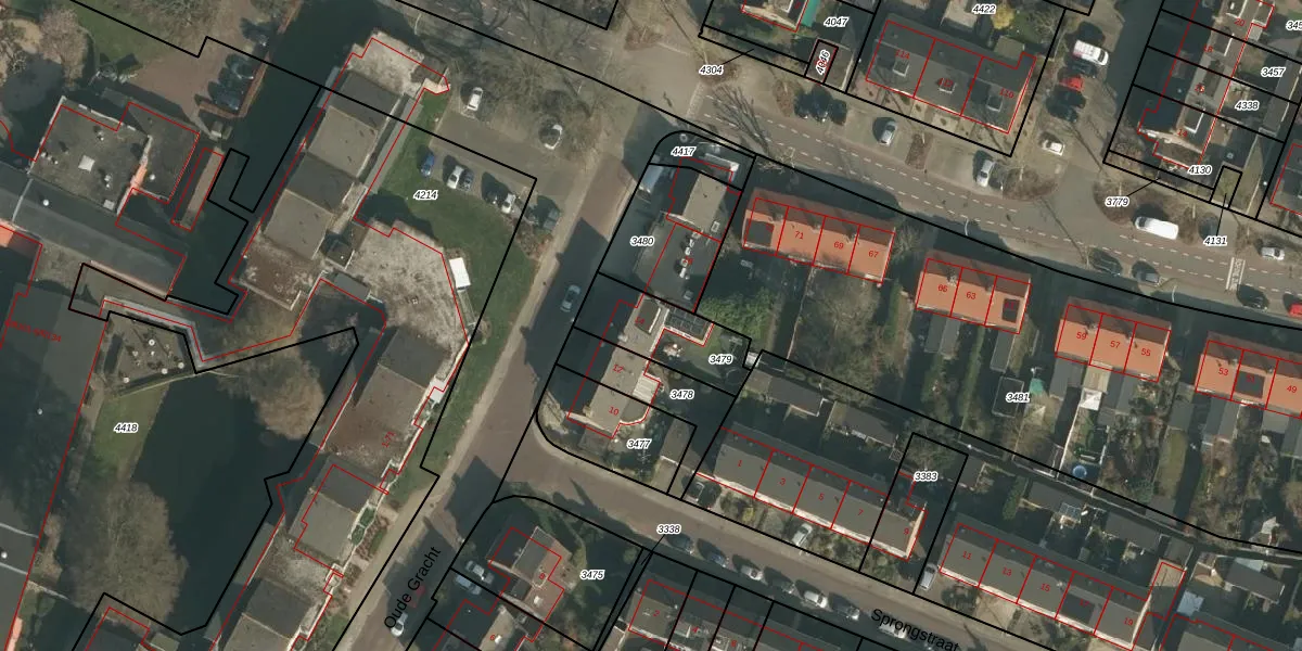 Gebruik de zoekbalk of klik op een perceel voor informatie over de adressen binnen dit perceel.