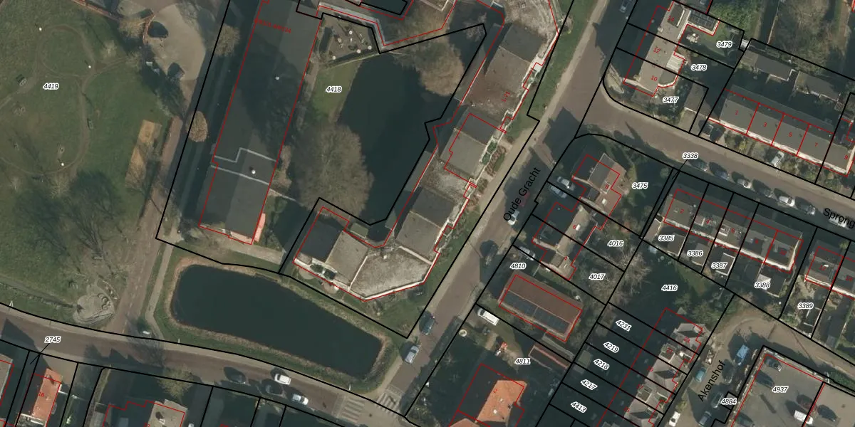 Het perceel waarop Oude Gracht 19 staat heeft een oppervlakte van 3245 m². Dit is een zeer groot perceel. De perceeloppervlakte wordt geregistreerd door het Kadaster. Gedetailleerde informatie over de maten van dit perceel kunt u vinden in het rapport Kadastrale kaart met maatvoering van Oude Gracht 19.