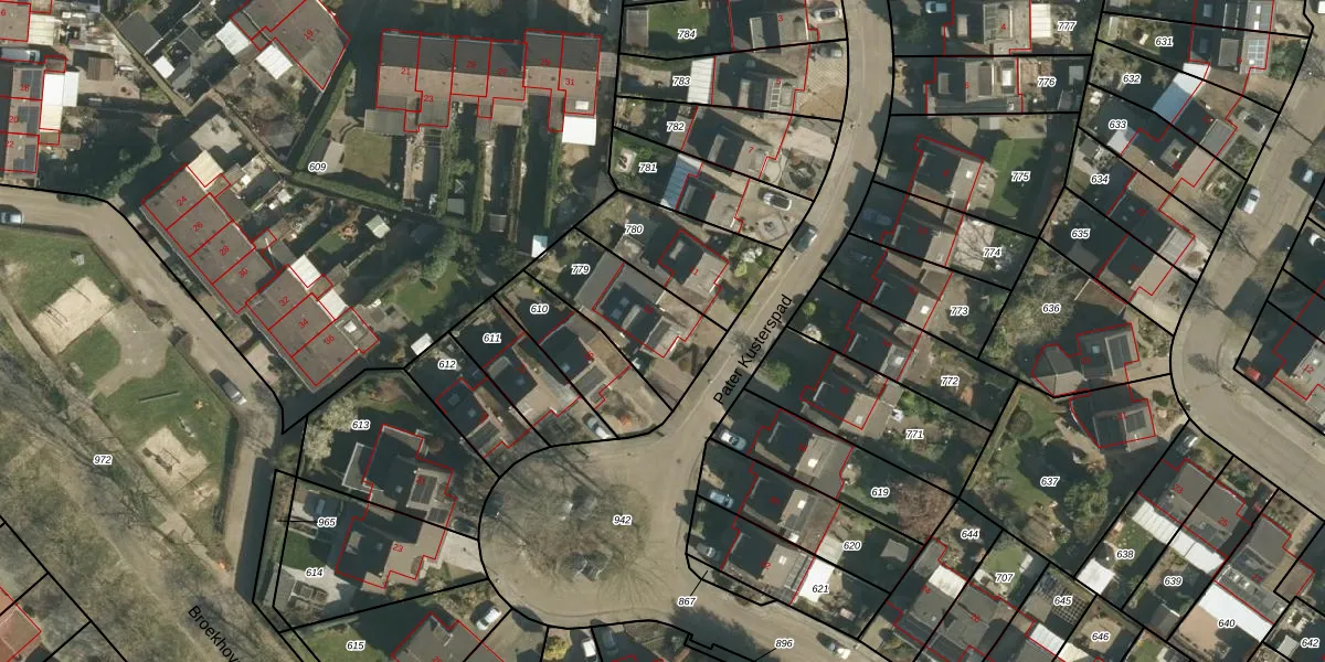 Pater Kusterspad 13 is gelegen op kadastraal perceel BEE02I779. Deze kadastrale aanduiding is uniek en wordt gebruikt door het Kadaster om eigendomsrechten en andere zakelijke rechten vast te leggen. Het perceel maakt onderdeel uit van de kadastrale gemeente Beek.