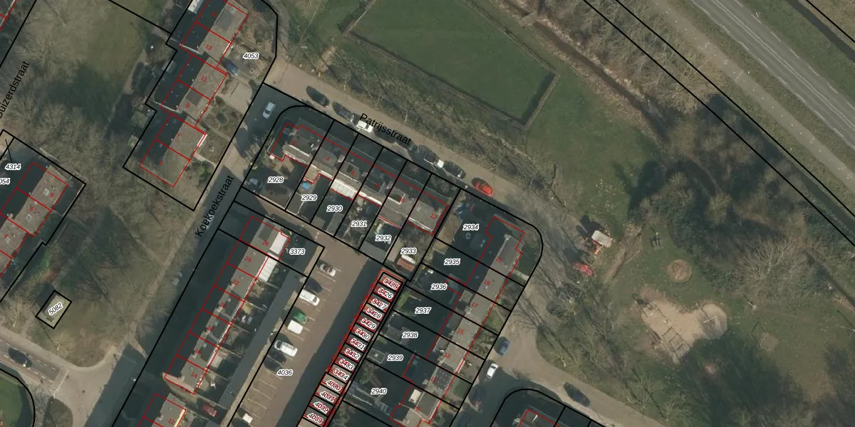 Het perceel waarop Patrijsstraat 12 staat heeft een oppervlakte van 185 m². Dit is een middelgroot perceel. De perceeloppervlakte wordt geregistreerd door het Kadaster. Gedetailleerde informatie over de maten van dit perceel kunt u vinden in het rapport Kadastrale kaart met maatvoering van Patrijsstraat 12.