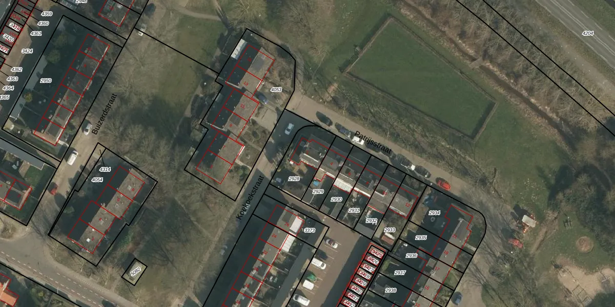 Gebruik de zoekbalk of klik op een perceel voor informatie over de adressen binnen dit perceel.