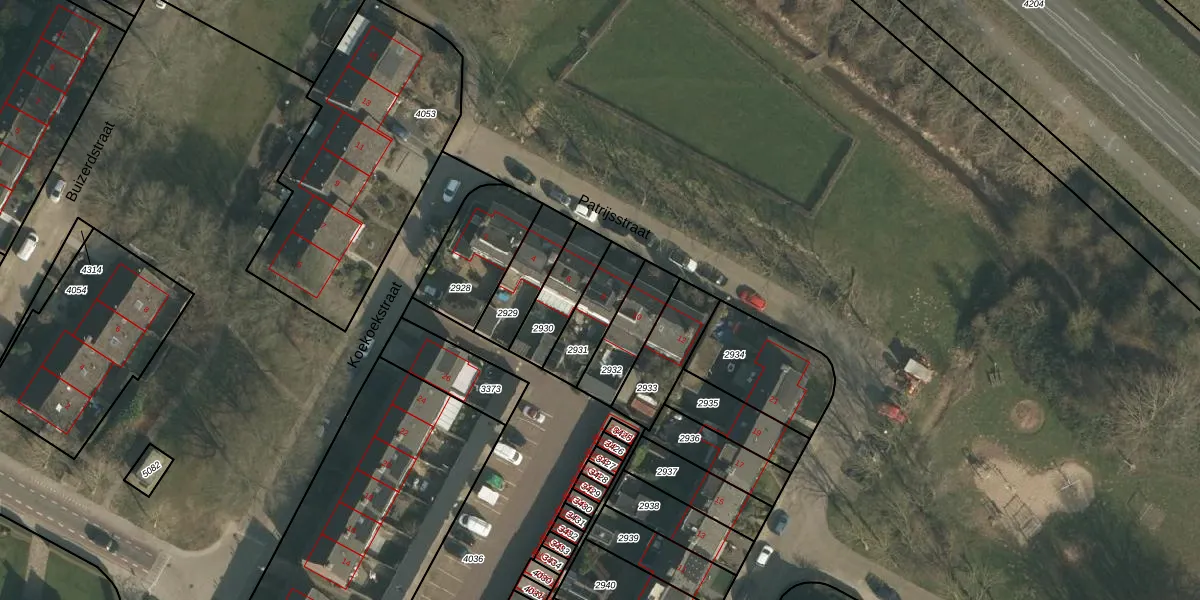 Gebruik de zoekbalk of klik op een perceel voor informatie over de adressen binnen dit perceel.
