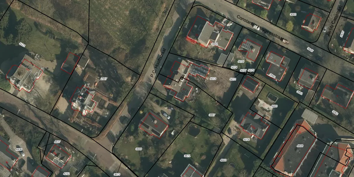 Het perceel waarop P.C. Hooftstraat 4 staat heeft een oppervlakte van 700 m². Dit is een groot perceel. De perceeloppervlakte wordt geregistreerd door het Kadaster. Gedetailleerde informatie over de maten van dit perceel kunt u vinden in het rapport Kadastrale kaart met maatvoering van P.C. Hooftstraat 4.