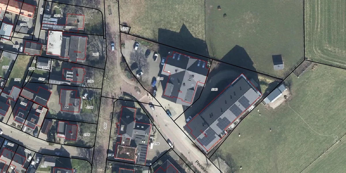 Het perceel waarop Peeskesweg 1-5 staat heeft een oppervlakte van 1525 m². Dit is een zeer groot perceel. De perceeloppervlakte wordt geregistreerd door het Kadaster. Gedetailleerde informatie over de maten van dit perceel kunt u vinden in het rapport Kadastrale kaart met maatvoering van Peeskesweg 1-5.