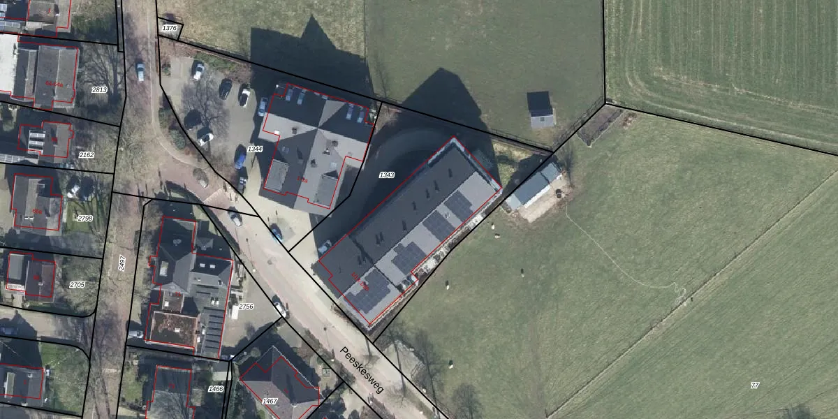 Het perceel waarop Peeskesweg 1-22 staat heeft een oppervlakte van 1679 m². Dit is een zeer groot perceel. De perceeloppervlakte wordt geregistreerd door het Kadaster. Gedetailleerde informatie over de maten van dit perceel kunt u vinden in het rapport Kadastrale kaart met maatvoering van Peeskesweg 1-22.