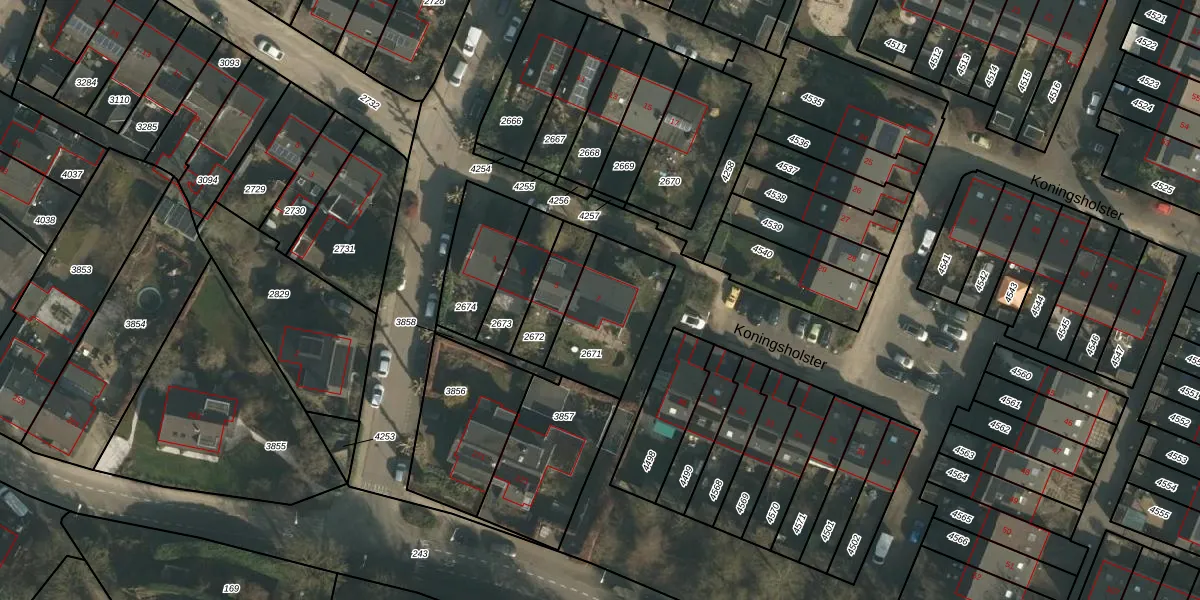 Gebruik de zoekbalk of klik op een perceel voor informatie over de adressen binnen dit perceel.