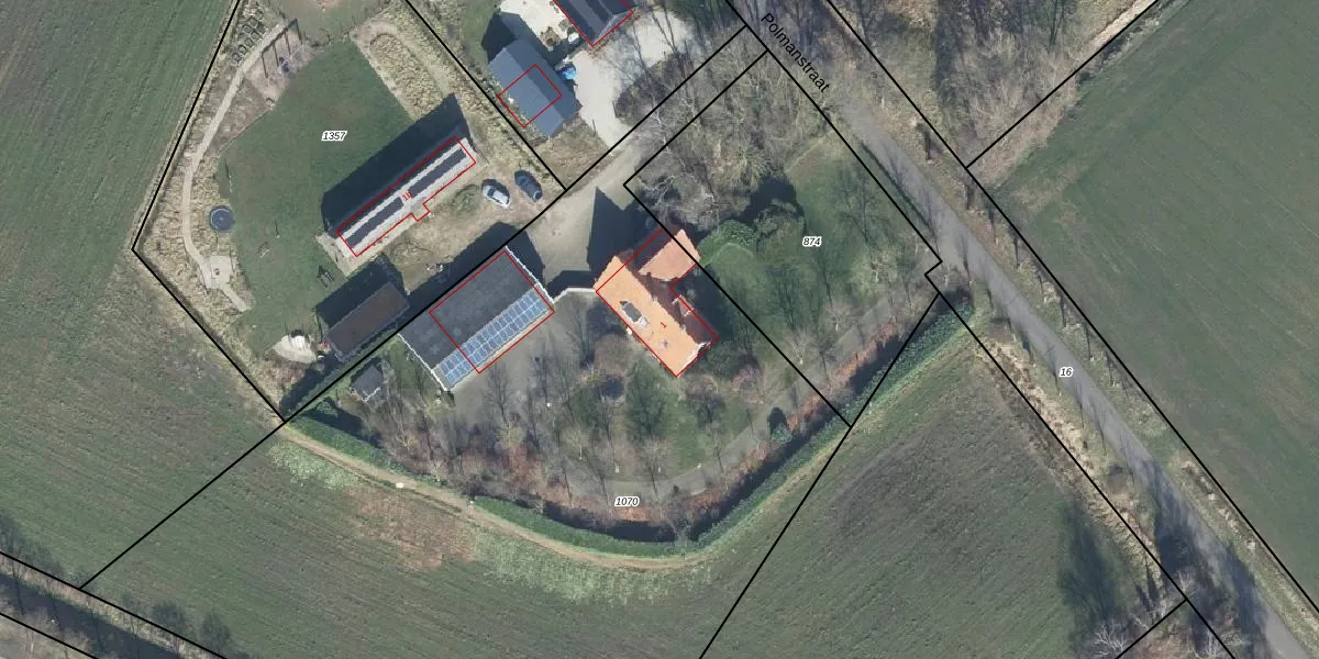 Het perceel waarop Polmanstraat 1 staat heeft een oppervlakte van 6040 m². Dit is een zeer groot perceel. De perceeloppervlakte wordt geregistreerd door het Kadaster. Gedetailleerde informatie over de maten van dit perceel kunt u vinden in het rapport Kadastrale kaart met maatvoering van Polmanstraat 1.