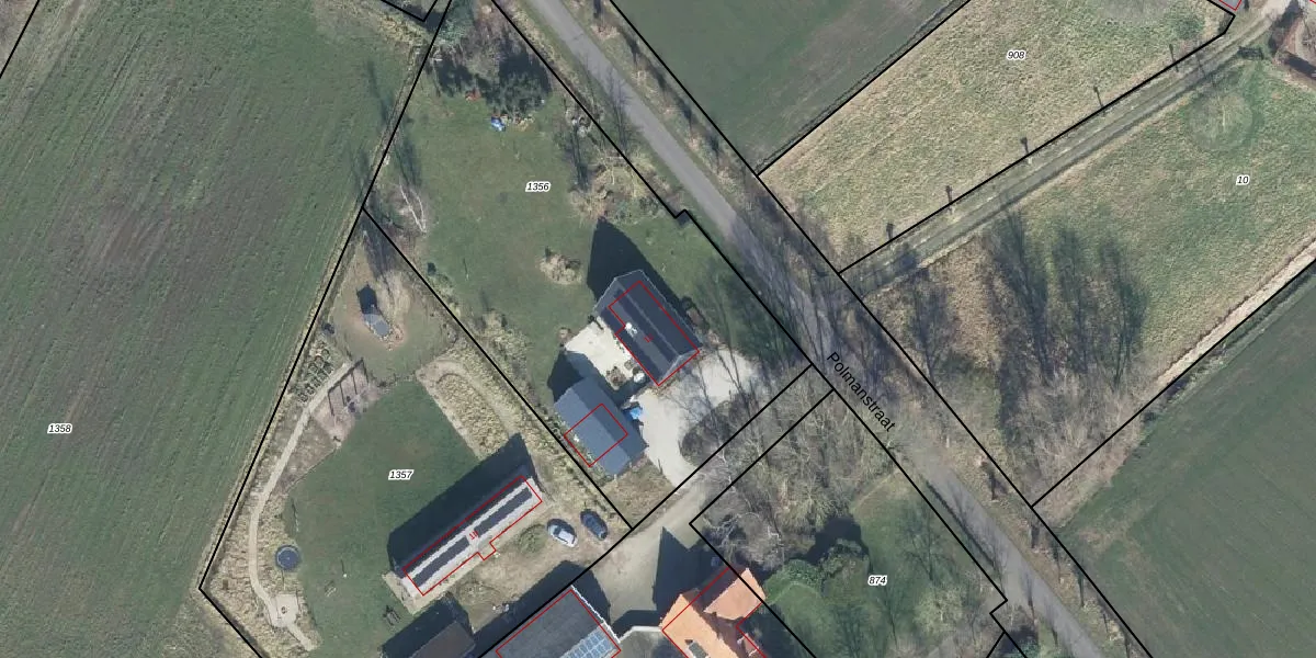 Het perceel waarop Polmanstraat 1-c staat heeft een oppervlakte van 2607 m². Dit is een zeer groot perceel. De perceeloppervlakte wordt geregistreerd door het Kadaster. Gedetailleerde informatie over de maten van dit perceel kunt u vinden in het rapport Kadastrale kaart met maatvoering van Polmanstraat 1-c.
