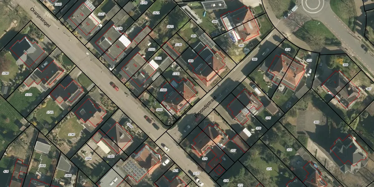 Het perceel waarop Proosdijstraat 9 staat heeft een oppervlakte van 266 m². Dit is een middelgroot perceel. De perceeloppervlakte wordt geregistreerd door het Kadaster. Gedetailleerde informatie over de maten van dit perceel kunt u vinden in het rapport Kadastrale kaart met maatvoering van Proosdijstraat 9.
