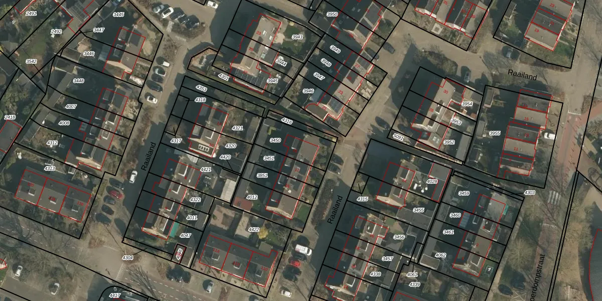 Het perceel waarop Raailand 19 staat heeft een oppervlakte van 250 m². Dit is een middelgroot perceel. De perceeloppervlakte wordt geregistreerd door het Kadaster. Gedetailleerde informatie over de maten van dit perceel kunt u vinden in het rapport Kadastrale kaart met maatvoering van Raailand 19.