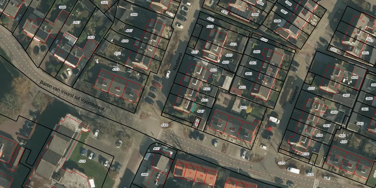 Het perceel waarop Raailand 4 staat heeft een oppervlakte van 142 m². Dit is een middelgroot perceel. De perceeloppervlakte wordt geregistreerd door het Kadaster. Gedetailleerde informatie over de maten van dit perceel kunt u vinden in het rapport Kadastrale kaart met maatvoering van Raailand 4.