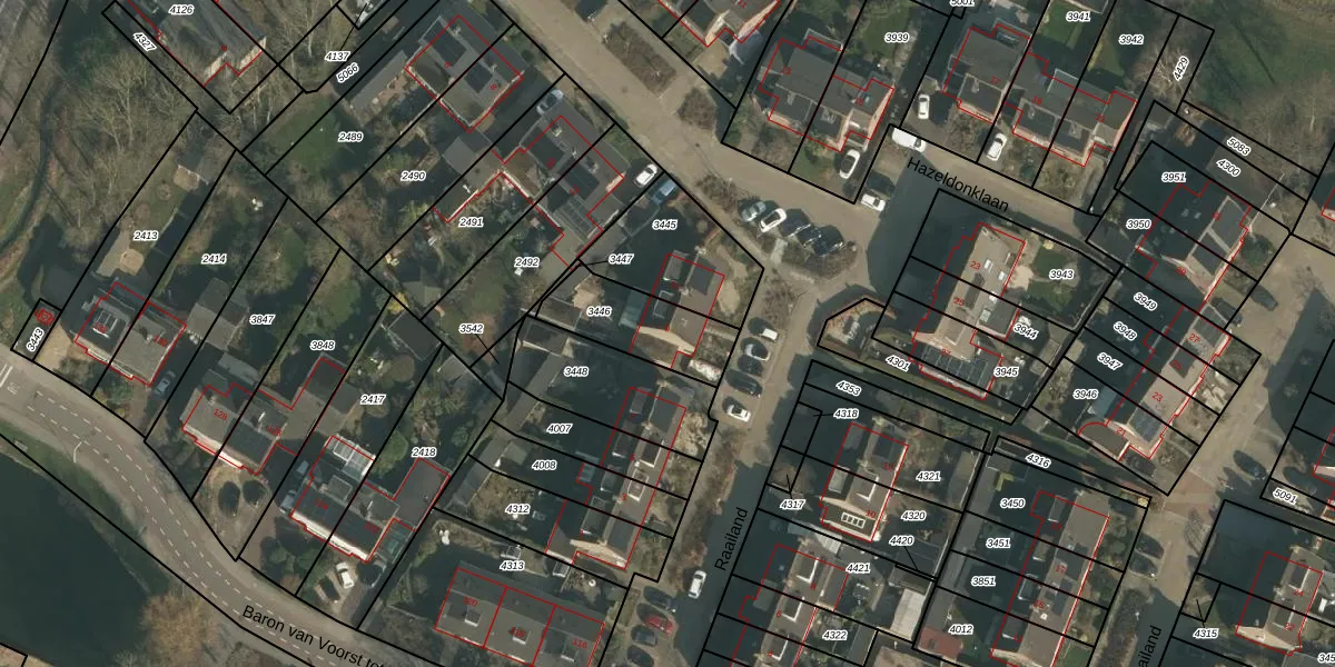 Gebruik de zoekbalk of klik op een perceel voor informatie over de adressen binnen dit perceel.