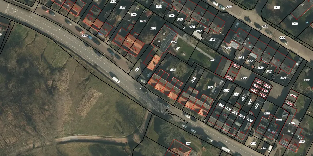Het perceel waarop Rijksstraatweg 309 staat heeft een oppervlakte van 581 m². Dit is een groot perceel. De perceeloppervlakte wordt geregistreerd door het Kadaster. Gedetailleerde informatie over de maten van dit perceel kunt u vinden in het rapport Kadastrale kaart met maatvoering van Rijksstraatweg 309.