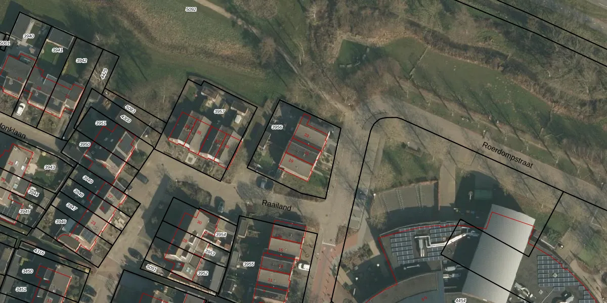 Roerdompstraat 21 is gelegen op kadastraal perceel UBG00B3956. Deze kadastrale aanduiding is uniek en wordt gebruikt door het Kadaster om eigendomsrechten en andere zakelijke rechten vast te leggen. Het perceel maakt onderdeel uit van de kadastrale gemeente Ubbergen.
