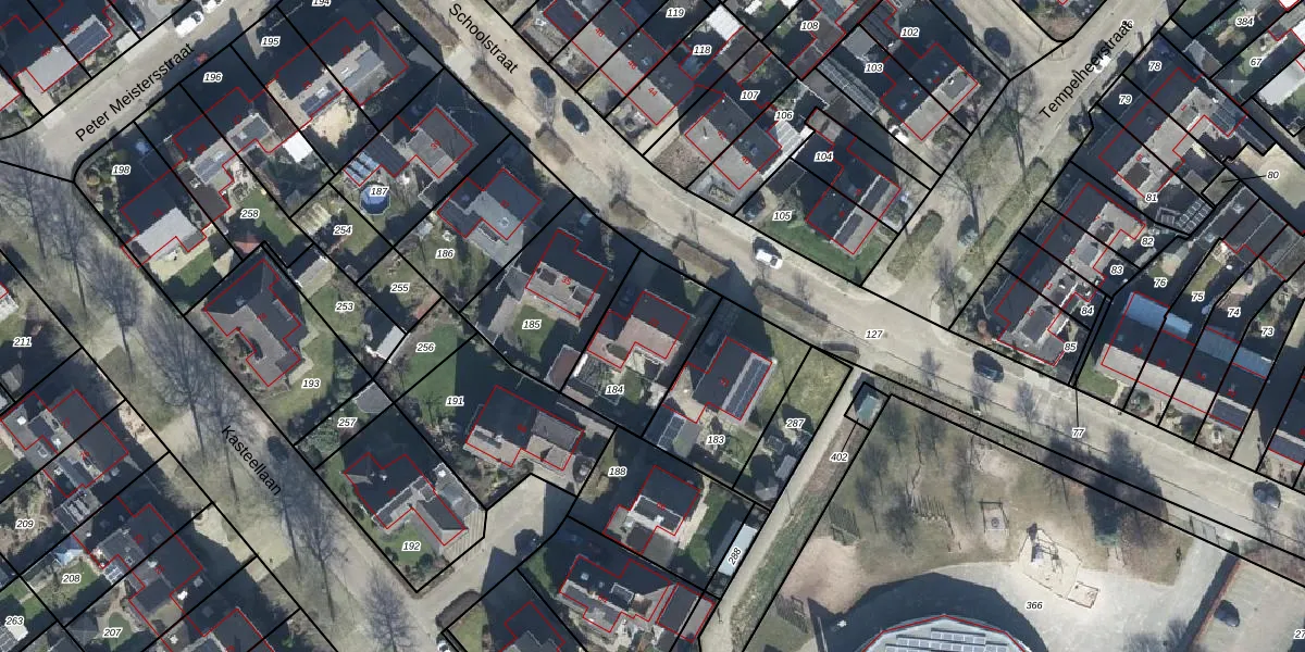 Het perceel waarop Schoolstraat 33 staat heeft een oppervlakte van 356 m². Dit is een groot perceel. De perceeloppervlakte wordt geregistreerd door het Kadaster. Gedetailleerde informatie over de maten van dit perceel kunt u vinden in het rapport Kadastrale kaart met maatvoering van Schoolstraat 33.
