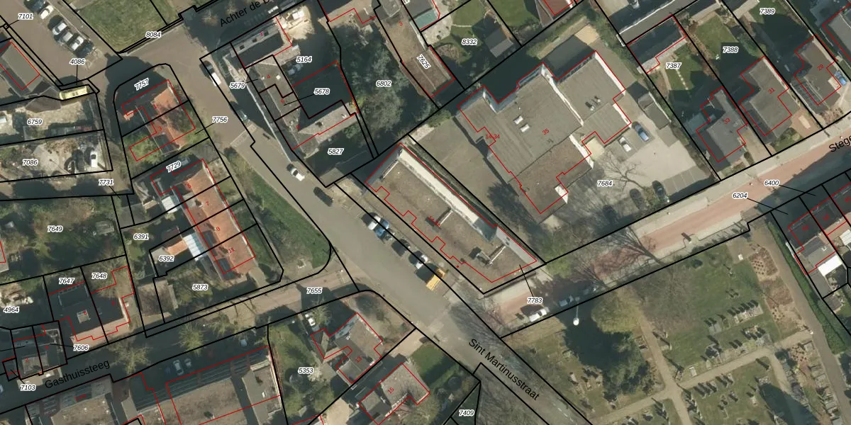 Sint Martinusstraat 32 is gelegen op kadastraal perceel BEE02B7783. Deze kadastrale aanduiding is uniek en wordt gebruikt door het Kadaster om eigendomsrechten en andere zakelijke rechten vast te leggen. Het perceel maakt onderdeel uit van de kadastrale gemeente Beek.