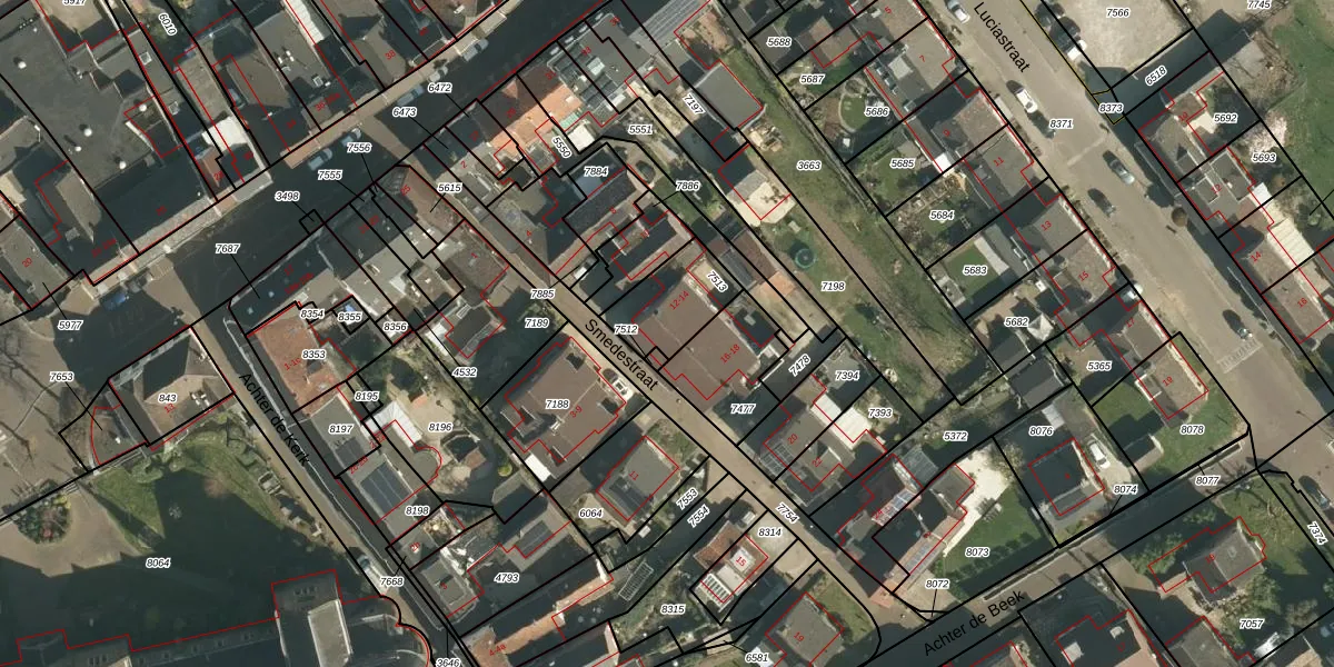 Smedestraat 14 is gelegen op kadastraal perceel BEE02B7513. Deze kadastrale aanduiding is uniek en wordt gebruikt door het Kadaster om eigendomsrechten en andere zakelijke rechten vast te leggen. Het perceel maakt onderdeel uit van de kadastrale gemeente Beek.