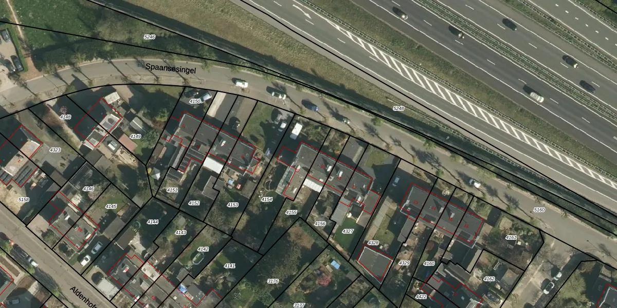 Spaansesingel 9 is gelegen op kadastraal perceel BEE02A4154. Deze kadastrale aanduiding is uniek en wordt gebruikt door het Kadaster om eigendomsrechten en andere zakelijke rechten vast te leggen. Het perceel maakt onderdeel uit van de kadastrale gemeente Beek.