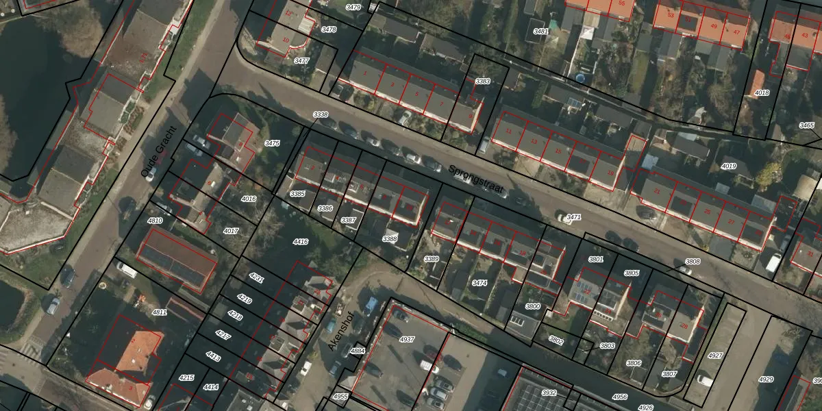 Sprongstraat 10 is gelegen op kadastraal perceel UBG00B3388. Deze kadastrale aanduiding is uniek en wordt gebruikt door het Kadaster om eigendomsrechten en andere zakelijke rechten vast te leggen. Het perceel maakt onderdeel uit van de kadastrale gemeente Ubbergen.