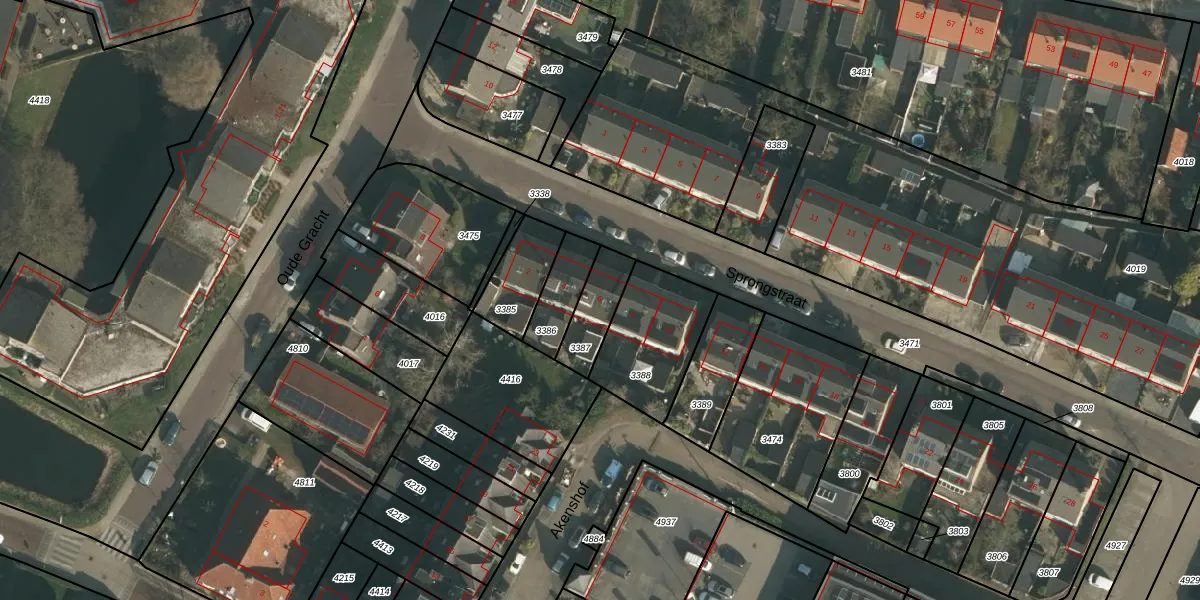 Sprongstraat 6 is gelegen op kadastraal perceel UBG00B3387. Deze kadastrale aanduiding is uniek en wordt gebruikt door het Kadaster om eigendomsrechten en andere zakelijke rechten vast te leggen. Het perceel maakt onderdeel uit van de kadastrale gemeente Ubbergen.