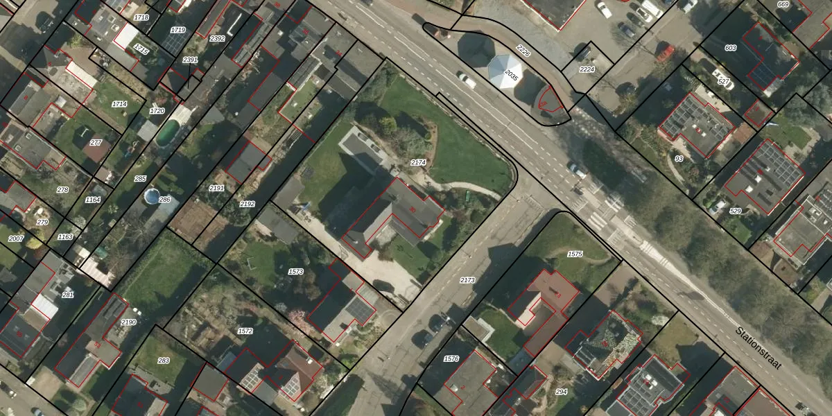 Het perceel waarop Stationstraat 30 staat heeft een oppervlakte van 1910 m². Dit is een zeer groot perceel. De perceeloppervlakte wordt geregistreerd door het Kadaster. Gedetailleerde informatie over de maten van dit perceel kunt u vinden in het rapport Kadastrale kaart met maatvoering van Stationstraat 30.
