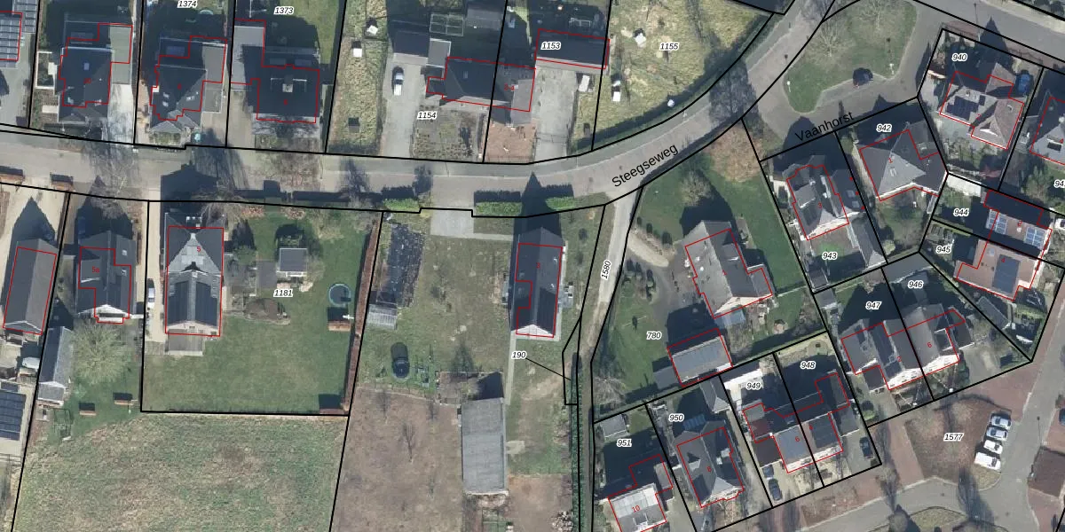 Gebruik de zoekbalk of klik op een perceel voor informatie over de adressen binnen dit perceel.