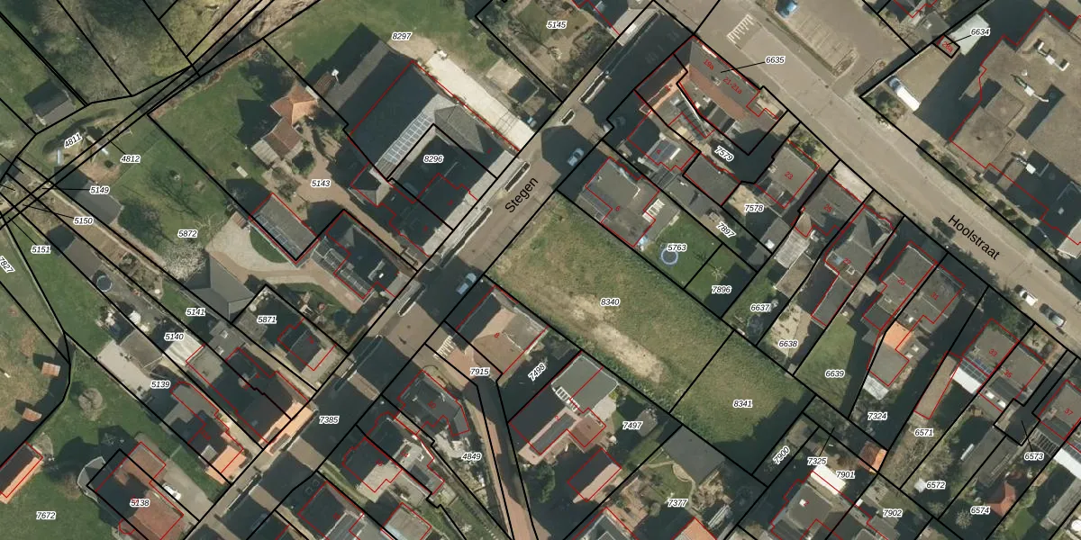 Het perceel waarop Stegen 6-a staat heeft een oppervlakte van 865 m². Dit is een groot perceel. De perceeloppervlakte wordt geregistreerd door het Kadaster. Gedetailleerde informatie over de maten van dit perceel kunt u vinden in het rapport Kadastrale kaart met maatvoering van Stegen 6-a.