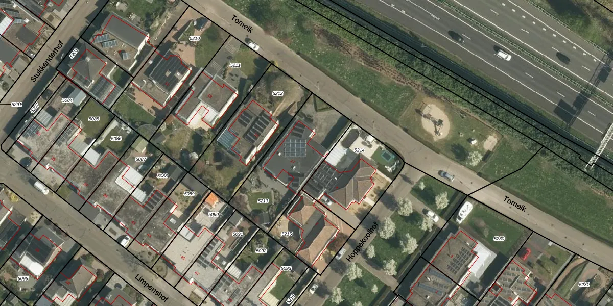 Het perceel waarop Tomeik 17 staat heeft een oppervlakte van 747 m². Dit is een groot perceel. De perceeloppervlakte wordt geregistreerd door het Kadaster. Gedetailleerde informatie over de maten van dit perceel kunt u vinden in het rapport Kadastrale kaart met maatvoering van Tomeik 17.