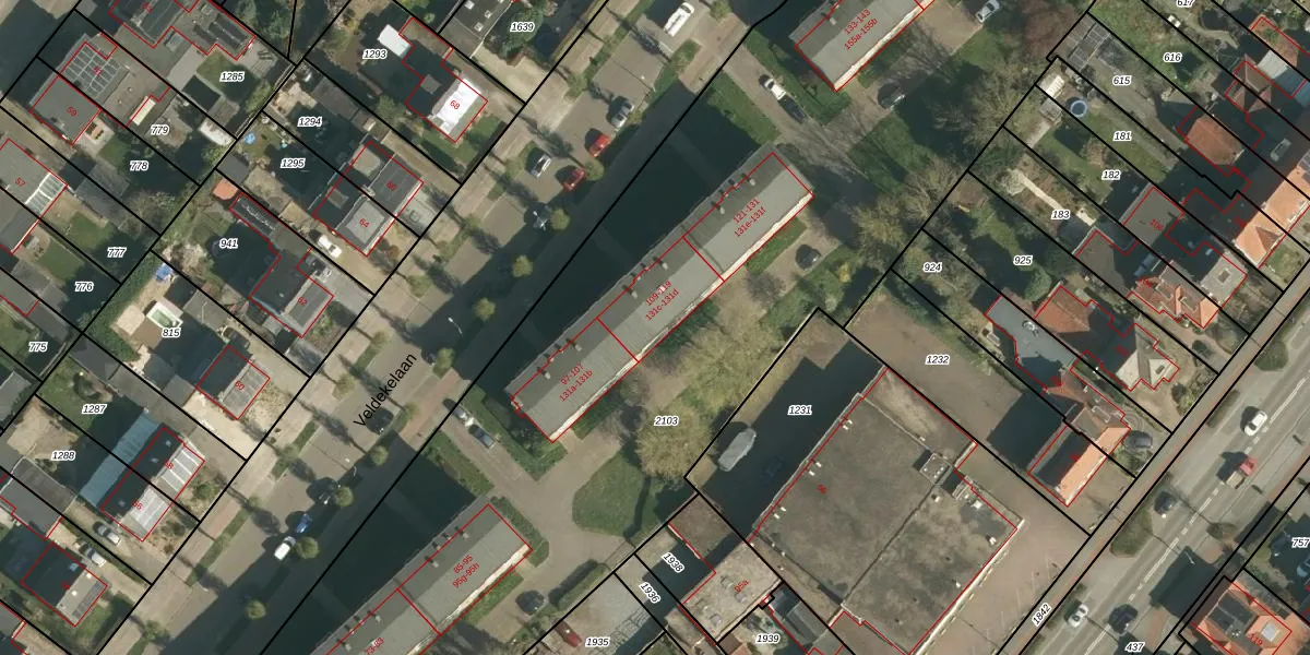 Veldekelaan 131-c is gelegen op kadastraal perceel BEE02G2103. Deze kadastrale aanduiding is uniek en wordt gebruikt door het Kadaster om eigendomsrechten en andere zakelijke rechten vast te leggen. Het perceel maakt onderdeel uit van de kadastrale gemeente Beek.
