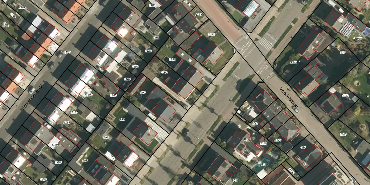 Veldekelaan 32 is gelegen op kadastraal perceel BEE02G1292. Deze kadastrale aanduiding is uniek en wordt gebruikt door het Kadaster om eigendomsrechten en andere zakelijke rechten vast te leggen. Het perceel maakt onderdeel uit van de kadastrale gemeente Beek.