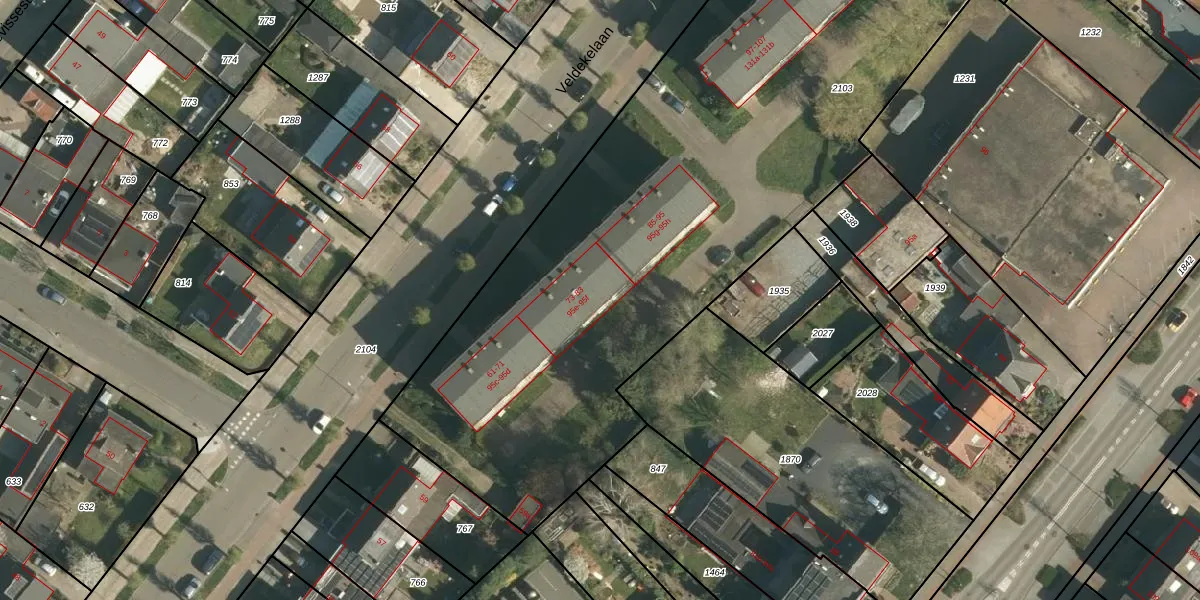 Veldekelaan 95-f is gelegen op kadastraal perceel BEE02G2103. Deze kadastrale aanduiding is uniek en wordt gebruikt door het Kadaster om eigendomsrechten en andere zakelijke rechten vast te leggen. Het perceel maakt onderdeel uit van de kadastrale gemeente Beek.